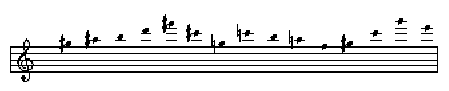 Specifically, the melody in Zipangu derives from a source set of fifteen pitches (ex. 1). Four of the pitches are represented twice, giving a total of eleven discrete pitches. Each pitch, although not absolutely fixed registrally, has a preferred register in which it usually occurs (in passages with octave doubling, the upper register is taken to be the operative one).