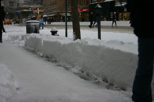 Update: And reading the Times this morning, I see that while the snow was copious, it wasn't violent enough to meet the criteria for a blizzard, at least not here in the city. The Times article ends with some lovely, poetic writing: