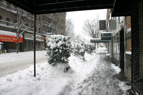 Thou still unshovelled street of sloshiness, Thou icey-slide of violence and snow crime...